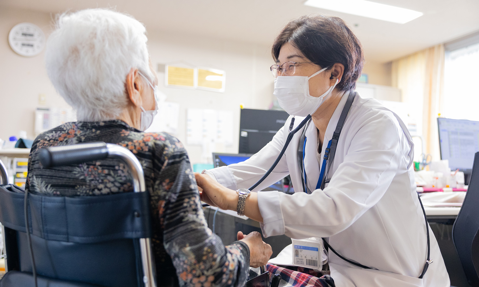 基本的には、当施設の医師が診察し、お薬も当施設から処方となります。当施設の医師が病院受診が必要と判断した場合は、必要書類を準備したうえ、病院受診して頂きます。但し、介護保険・医療保険の制度上の問題で一部制限が加わるものもありますので、医師または看護職員までご相談ください。